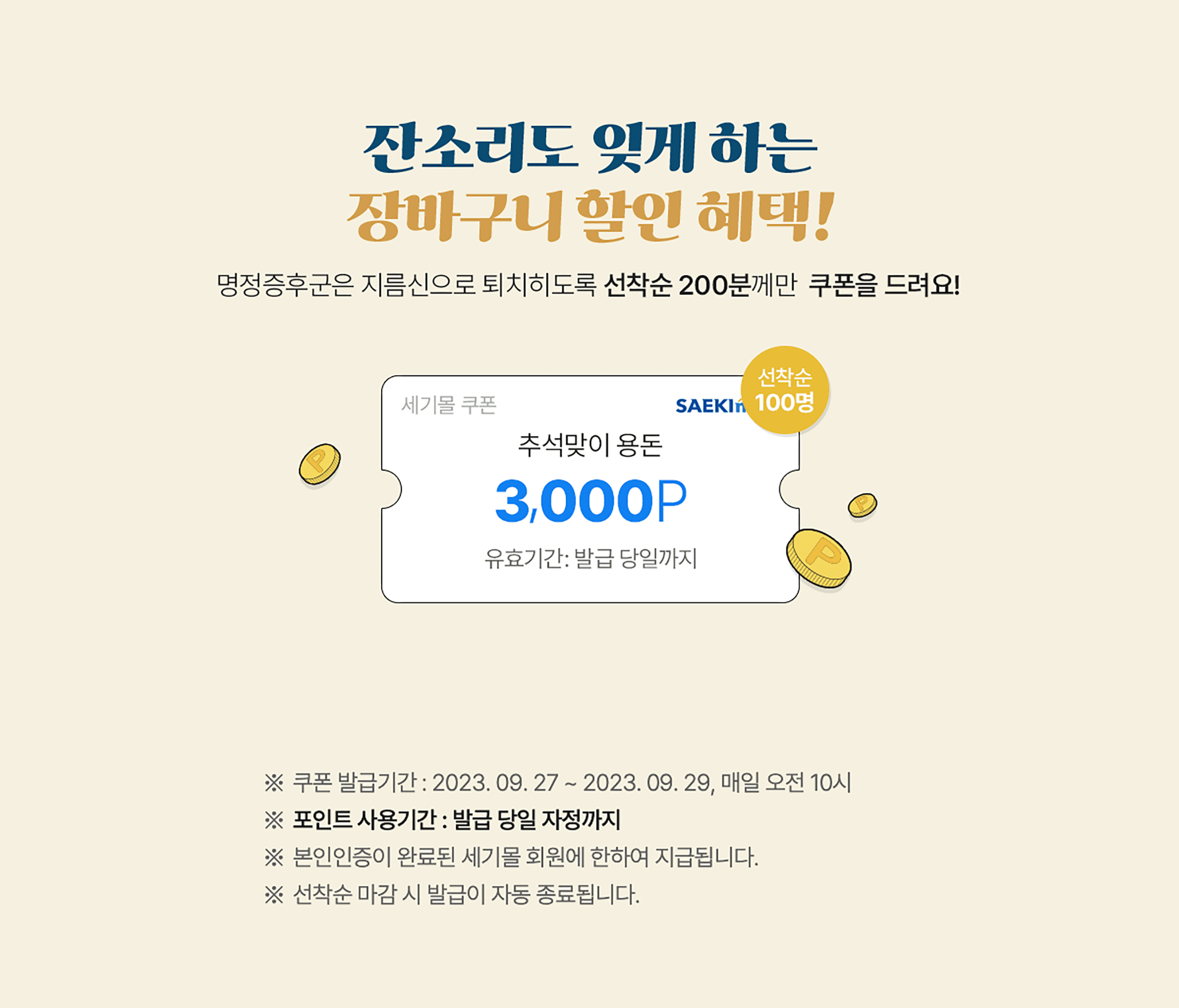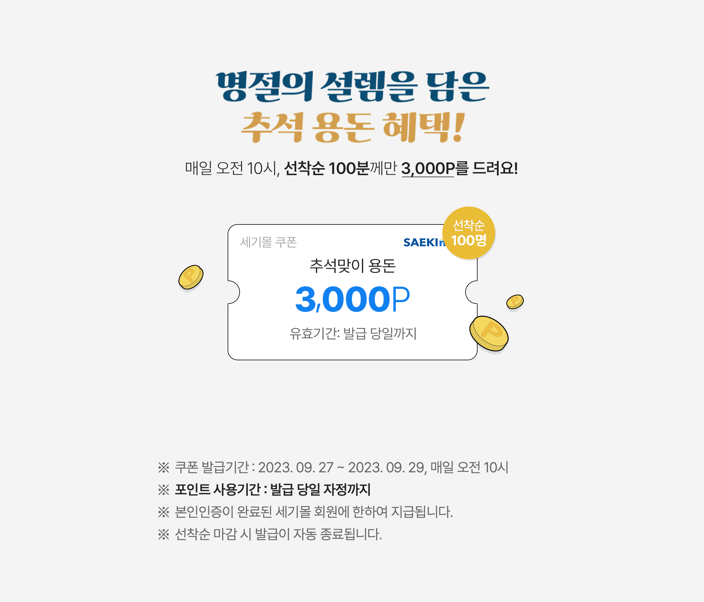 • 본 이벤트에서 지급되는 쿠폰은 사용 시, 일부 품목이 제외(일부 진행 중인 이벤트 상품 / 이슈 상품, 신제품 및 매입 브랜드 등)될 수 있으며, 세기몰에서만 사용 가능합니다.